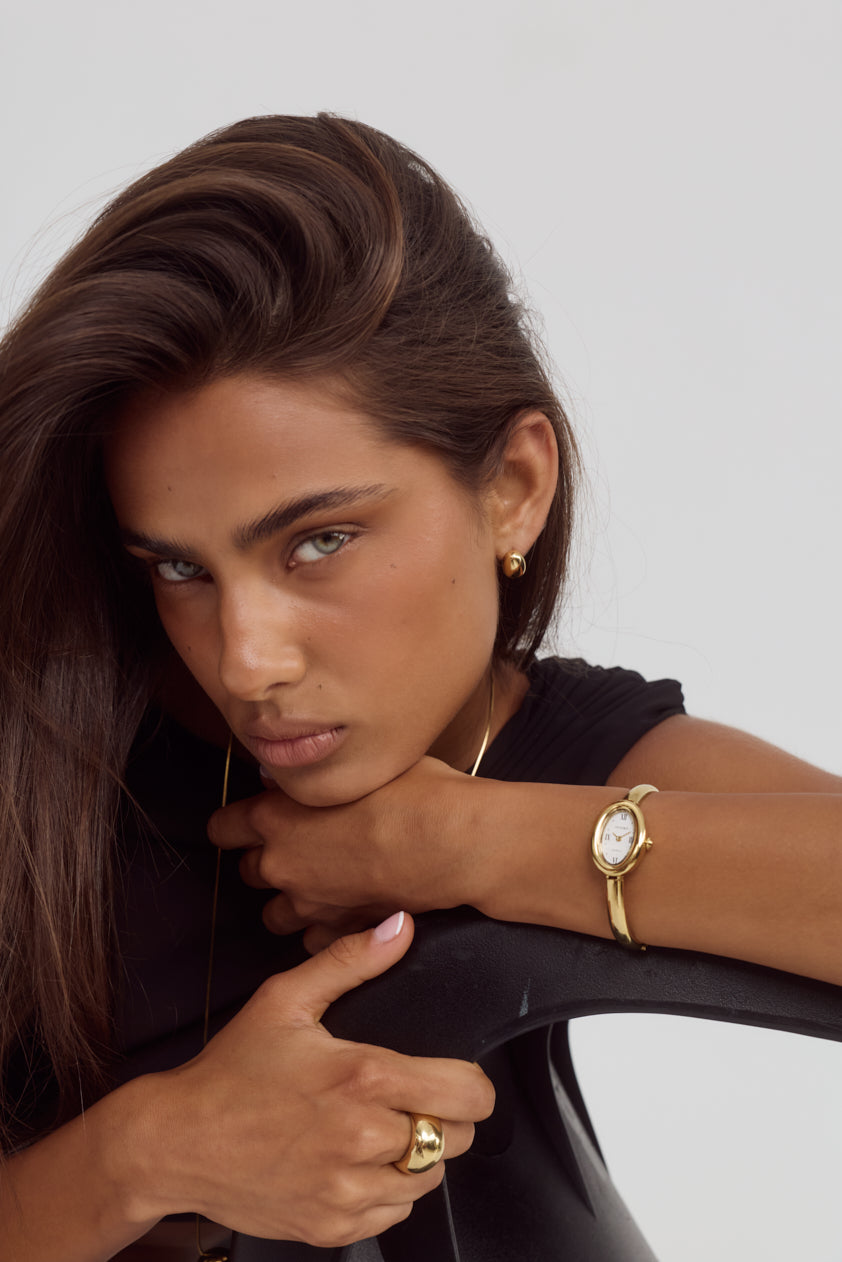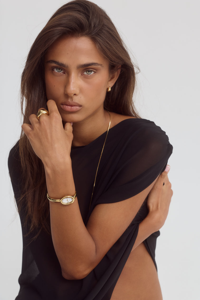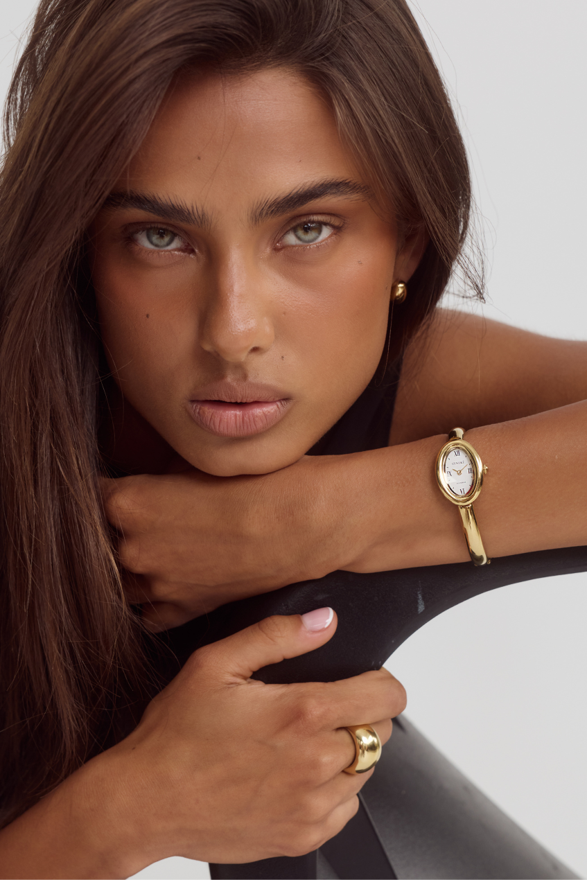 Our first bangle-style timepiece designed to blur the line between jewellery and function. With its minimalist oval face and adjustable bangle, Kate is made to elevate the every day. Available in our signature 18k Gold, 14k Gold, and Silver finishes.