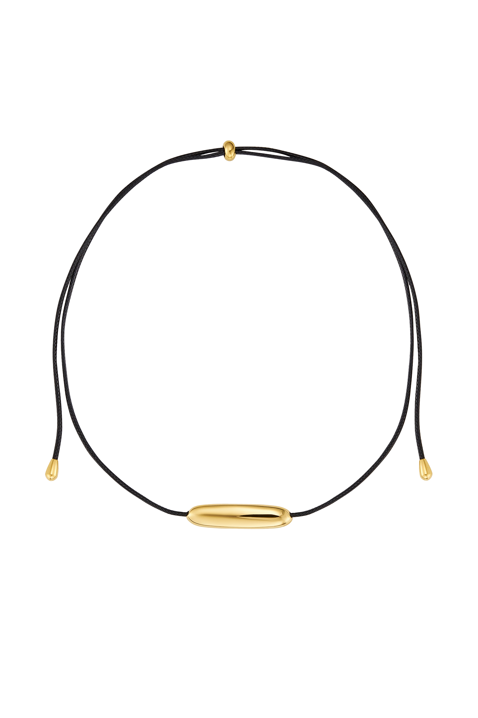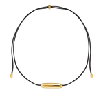 Featuring an rectangular-shaped dome in 18k Premium Gold Plated Stainless Steel and adjustable black cord, it brings a striking contrast to your look.