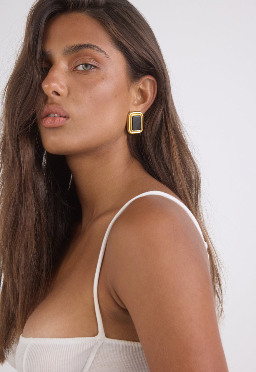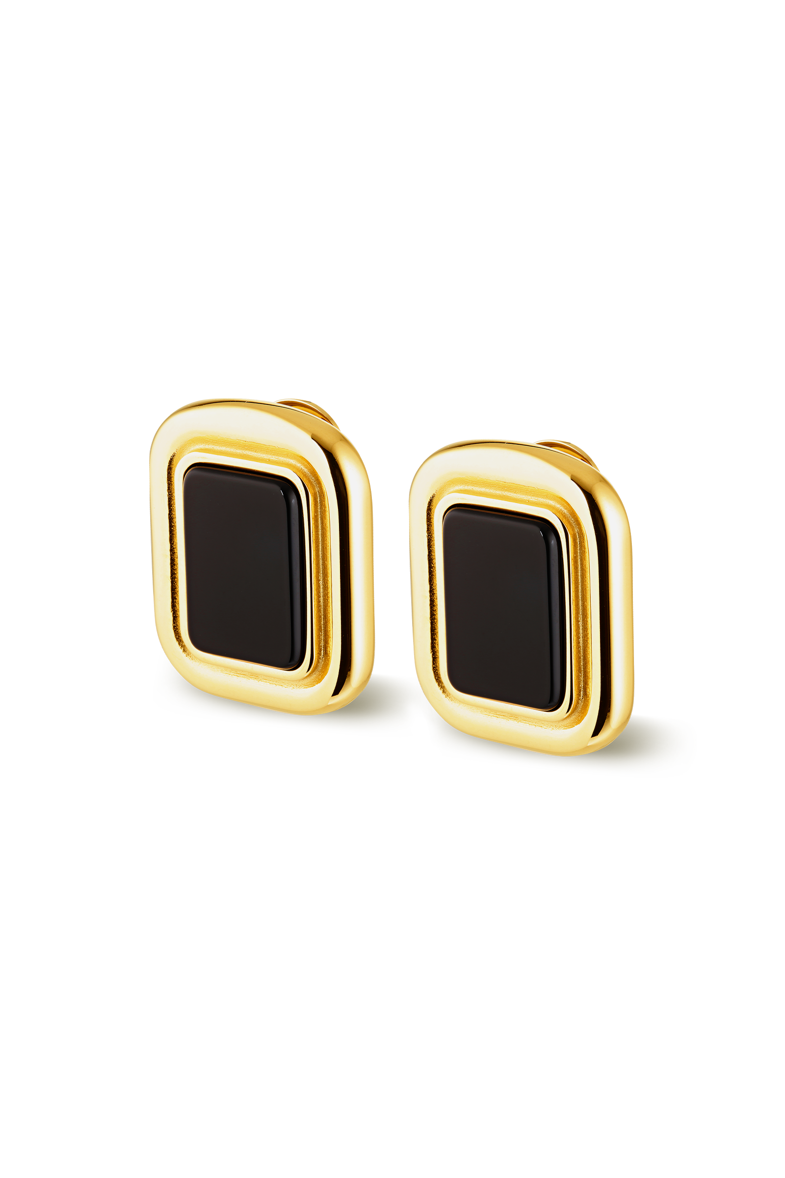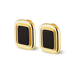 The Margaux Earrings feature a glossy black centre framed in 18k Premium Gold Plating Stainless Steel. Vintage-inspired yet modern, they bring a refined finish to any look.