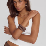 The Ellegra Bangle features a polished chocolate-toned resin finish with clean, sculptural shapes. Effortless on its own, elevated when stacked.