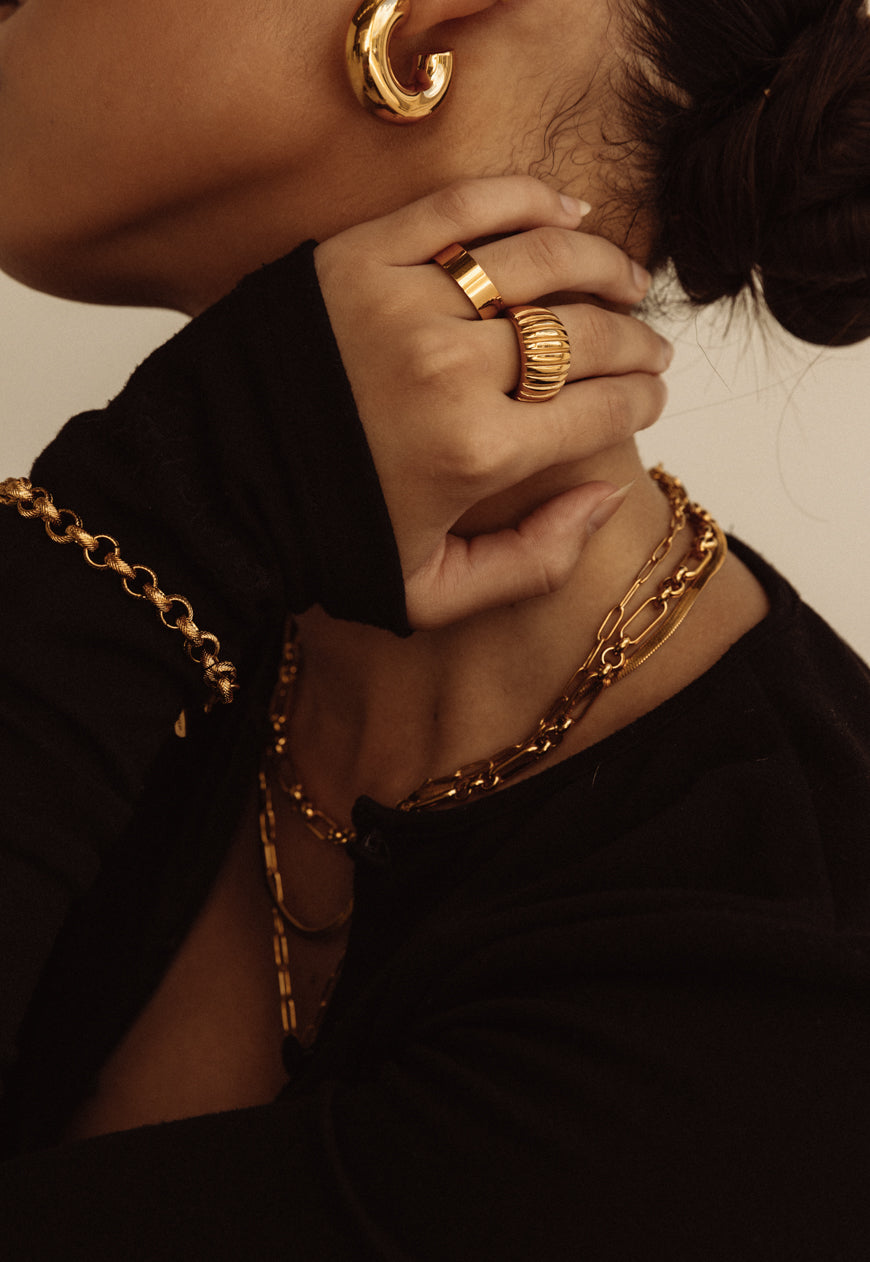 Combining our signature 18k gold plating with polished silver tones, each piece is crafted from premium stainless steel for lasting shine, durability, and a versatile, contemporary finish.