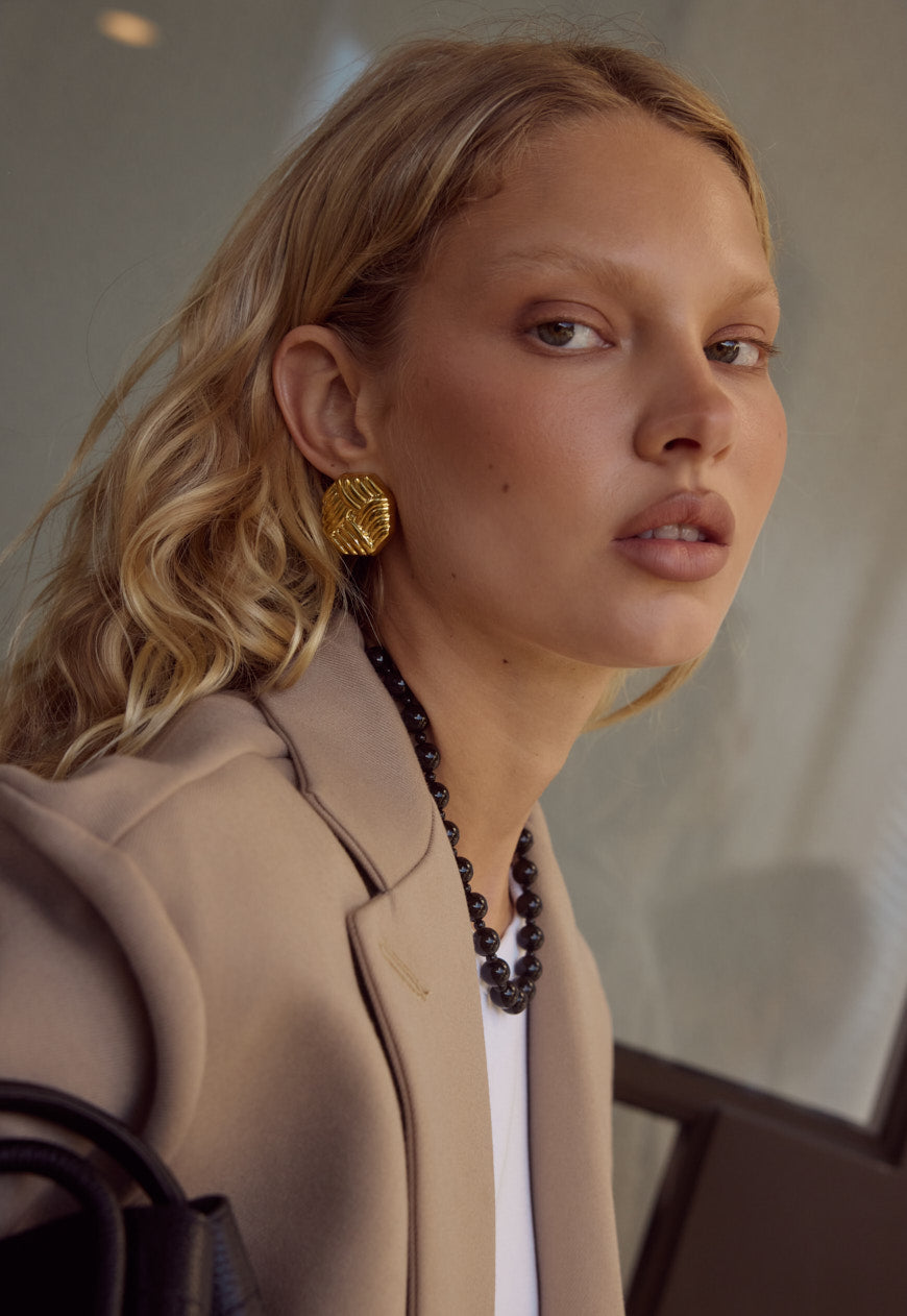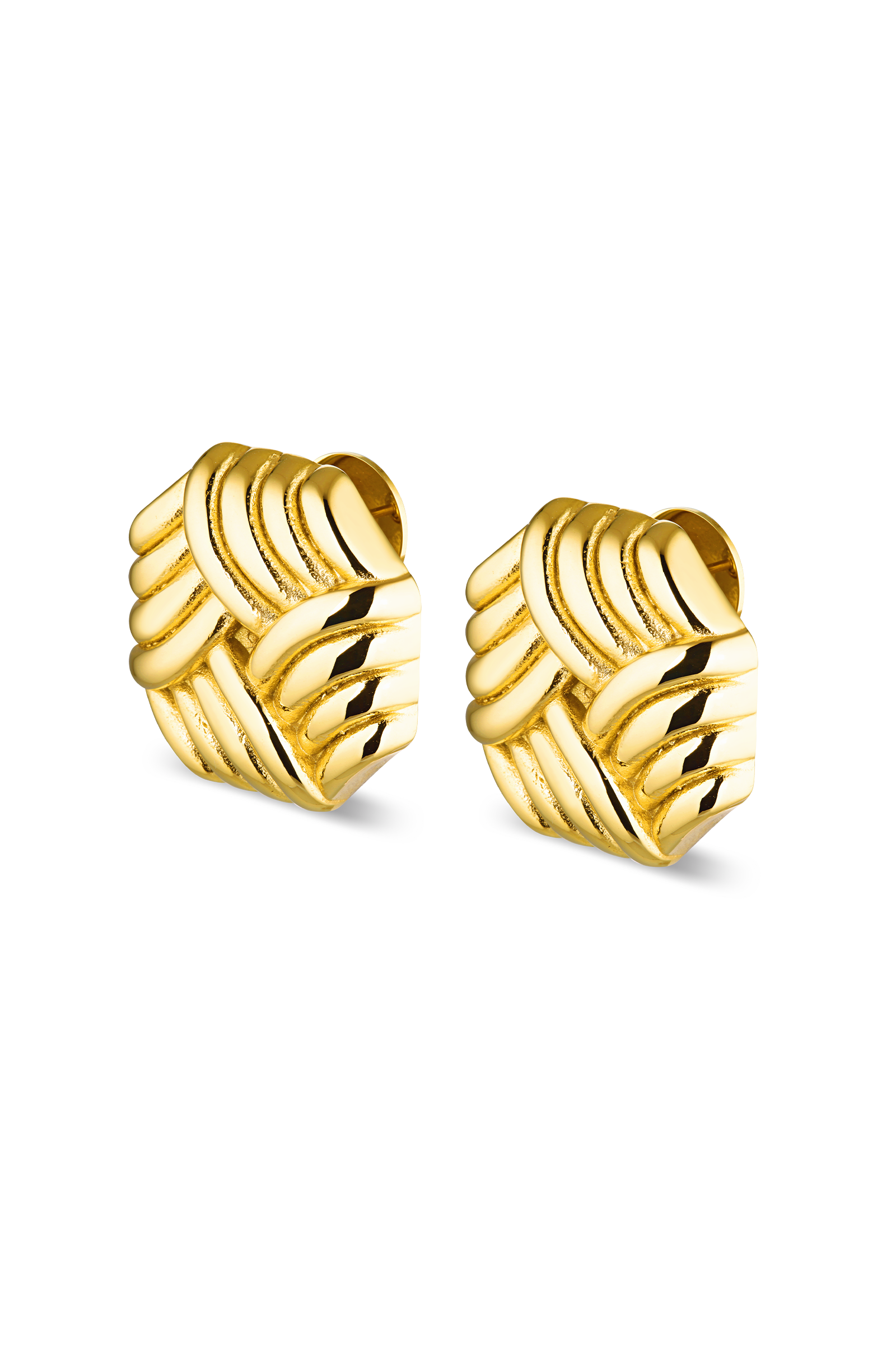 Geometry and artisan design is at the forefront with the Sabine Earrings, providing a respectful ode to Parisian detailing. Presented on an octagonal silhouette featuring intertwined line work encompassing contemporary appeal for a fresh statement element. Crafted with 18k Premium gold plating on stainless steel and secured with our custom earring backings providing an instant lift and easy to wear style.