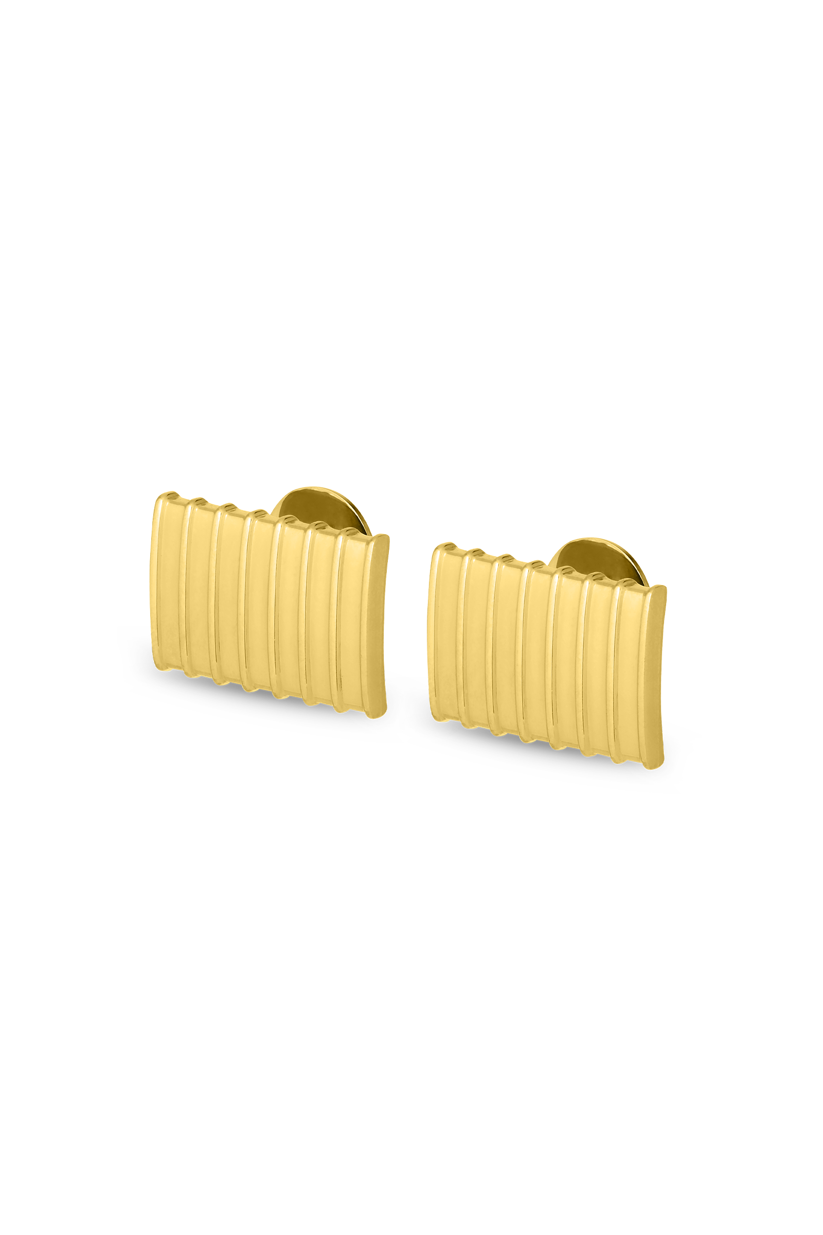 An everyday staple with a refined edge. The Tabi Earrings are 18k Gold-plated rectangles, finished with soft ribbed lines that add dimension and catch the light. Versatile enough for daily wear, elevated enough for evening.