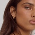 An essential everyday huggie crafted from 18k gold-plated stainless steel. Secures with a click-through fastening, allowing the pair to sit comfortably on the ear without added weight. Wear alone or stack with the Rhode or Rhi Huggies for a layered look.