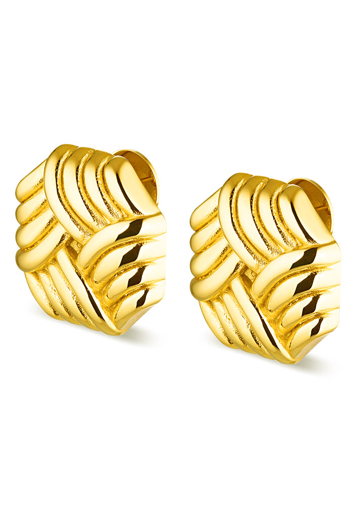 Geometry and artisan design is at the forefront with the Sabine Earrings, providing a respectful ode to Parisian detailing. Presented on an octagonal silhouette featuring intertwined line work encompassing contemporary appeal for a fresh statement element. Crafted with 18k Premium gold plating on stainless steel and secured with our custom earring backings providing an instant lift and easy to wear style.