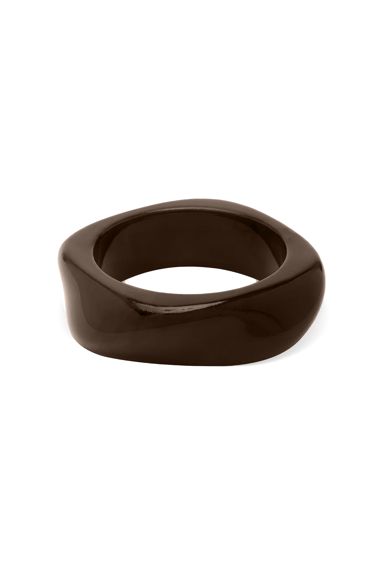 The Ellegra Bangle features a polished chocolate-toned resin finish with clean, sculptural shapes. Effortless on its own, elevated when stacked.