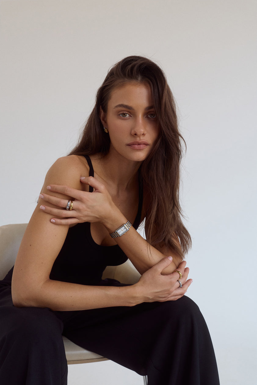 Combining our signature 18k gold plating with polished silver tones, each piece is crafted from premium stainless steel for lasting shine, durability, and a versatile, contemporary finish.