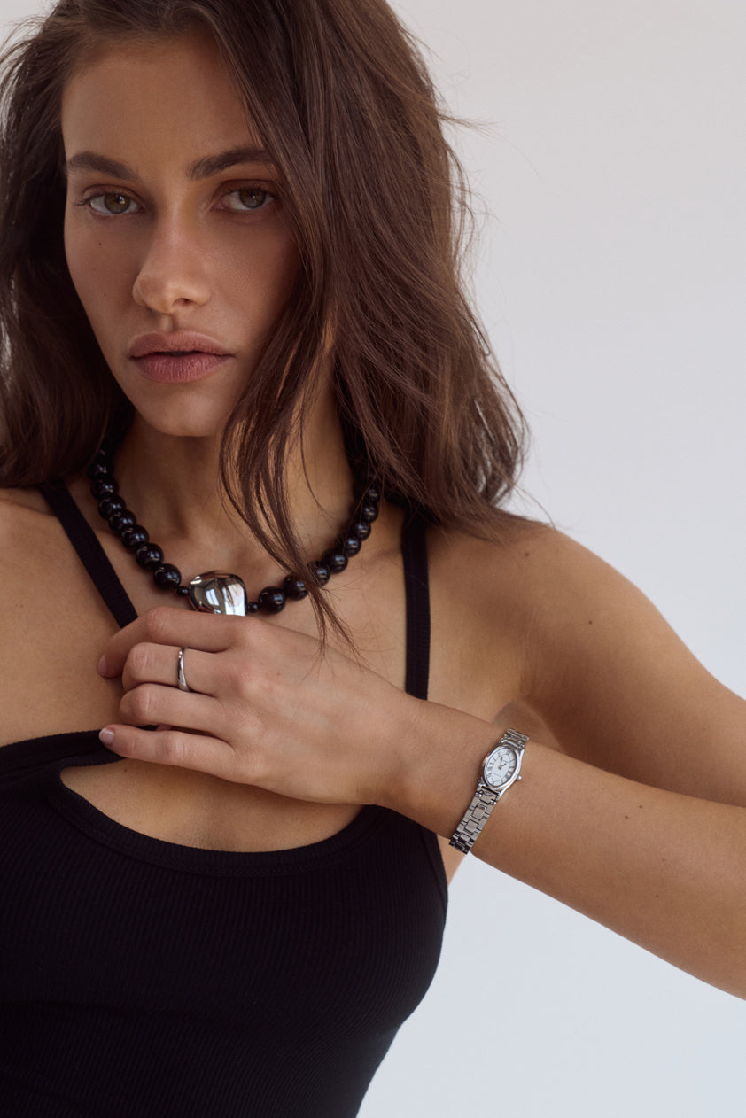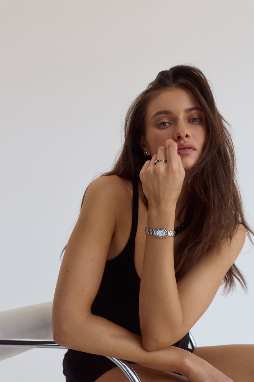 A sculptural take on time – refined in form and finish. The Emmeline Watch, the daintiest silhouette in our timepiece collection, brings sculptural clarity to the everyday. With its sleek profile and softened angles, the polished finish evokes quiet luxury – offering a timeless accent that slips seamlessly into your rotation. Consider it your signature – worn with intention, styled with ease.