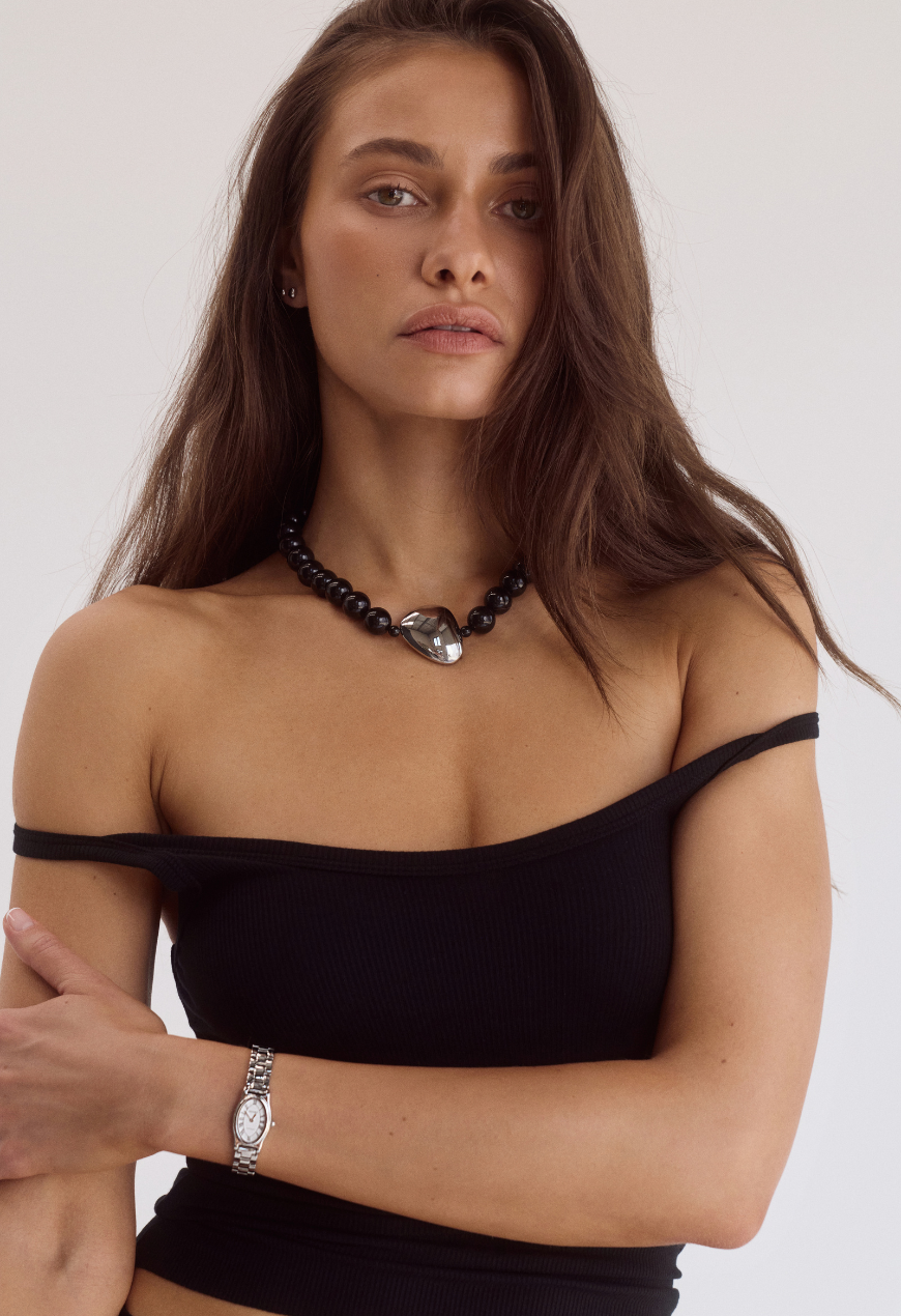 Rich, warm, and softly luminous – our signature gold finish. Designed to make a subtle statement, each piece is plated over high-quality stainless steel for enduring wear.