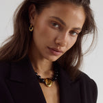 A petite statement with sculptural appeal. The Gabrielle Earrings feature interlocking, high-polish curves crafted in 18k Premium Gold Plated Stainless Steel. Versatile enough for both a subtle statement or a stacked moment.