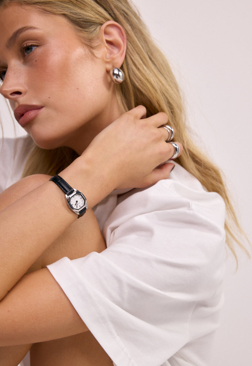Kensington Watch | Silver | Black Croc