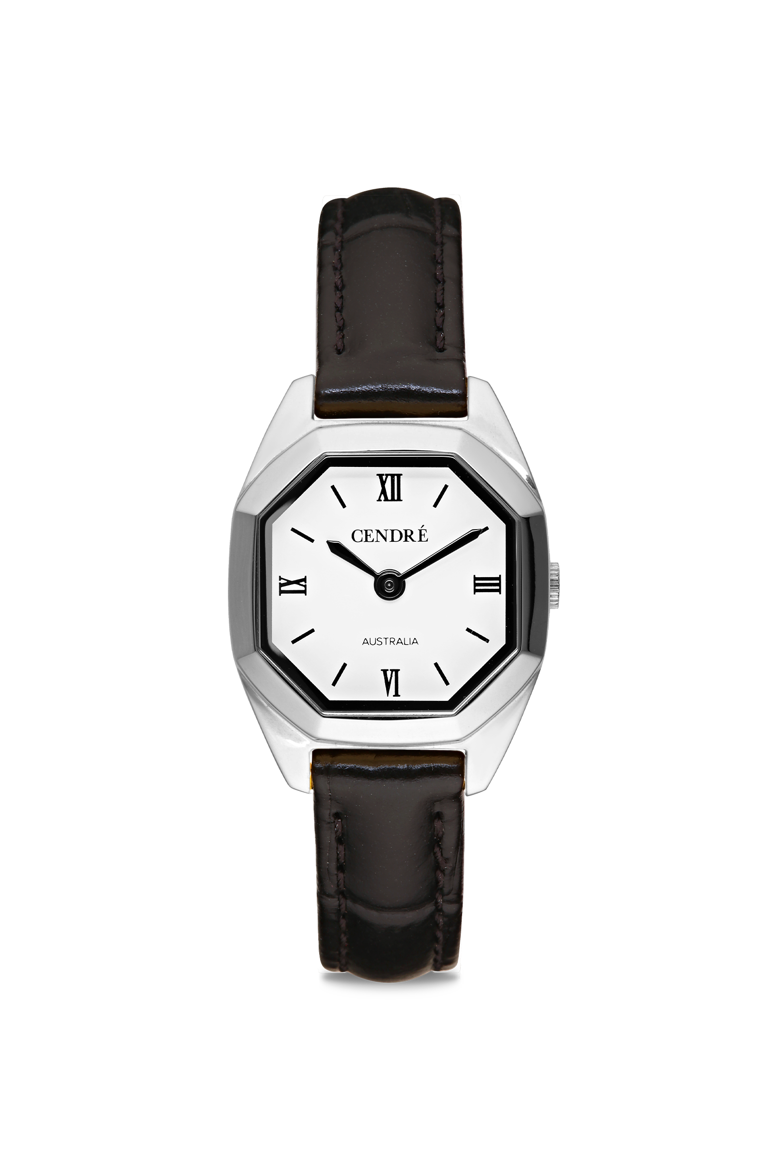 Crafted from high polish stainless steel, featuring an octagonal silhouette, roman numeral dial and genuine Italian leather band.