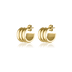 Polished, understated, and chic, the Liv Hoops are a staple in any jewellery collection. This open hoop design has a trompe l’œil effect, appearing to be three earrings in one. The duo are crafted from 18k gold-plated steel and they’re secured by our custom earring backings for instant lift. They deserve to take pride of place when worn so we recommend a minimal approach when it comes to pairing.