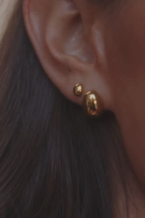The Bean Earrings feature a smooth bean-like silhouette. Crafted with 18k Premium Gold Plating on Stainless Steel, their petite and delicate form makes them a subtle statement, perfect for everyday wear.