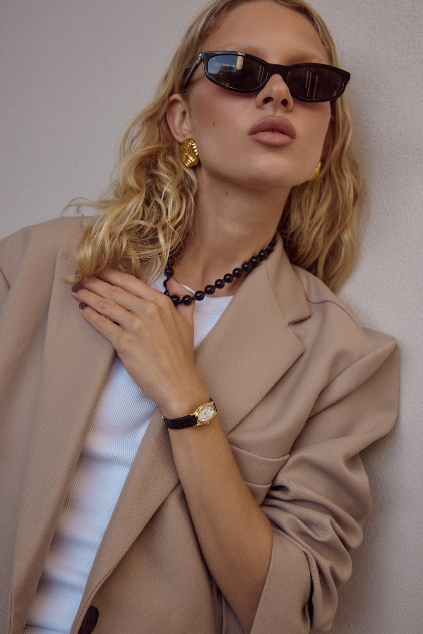 The Constance Necklace features round black agate beads paired with a delicate gold chain. Lightweight and versatile, it effortlessly elevates any look. Pair it with the Constance Bracelet for a coordinated look.