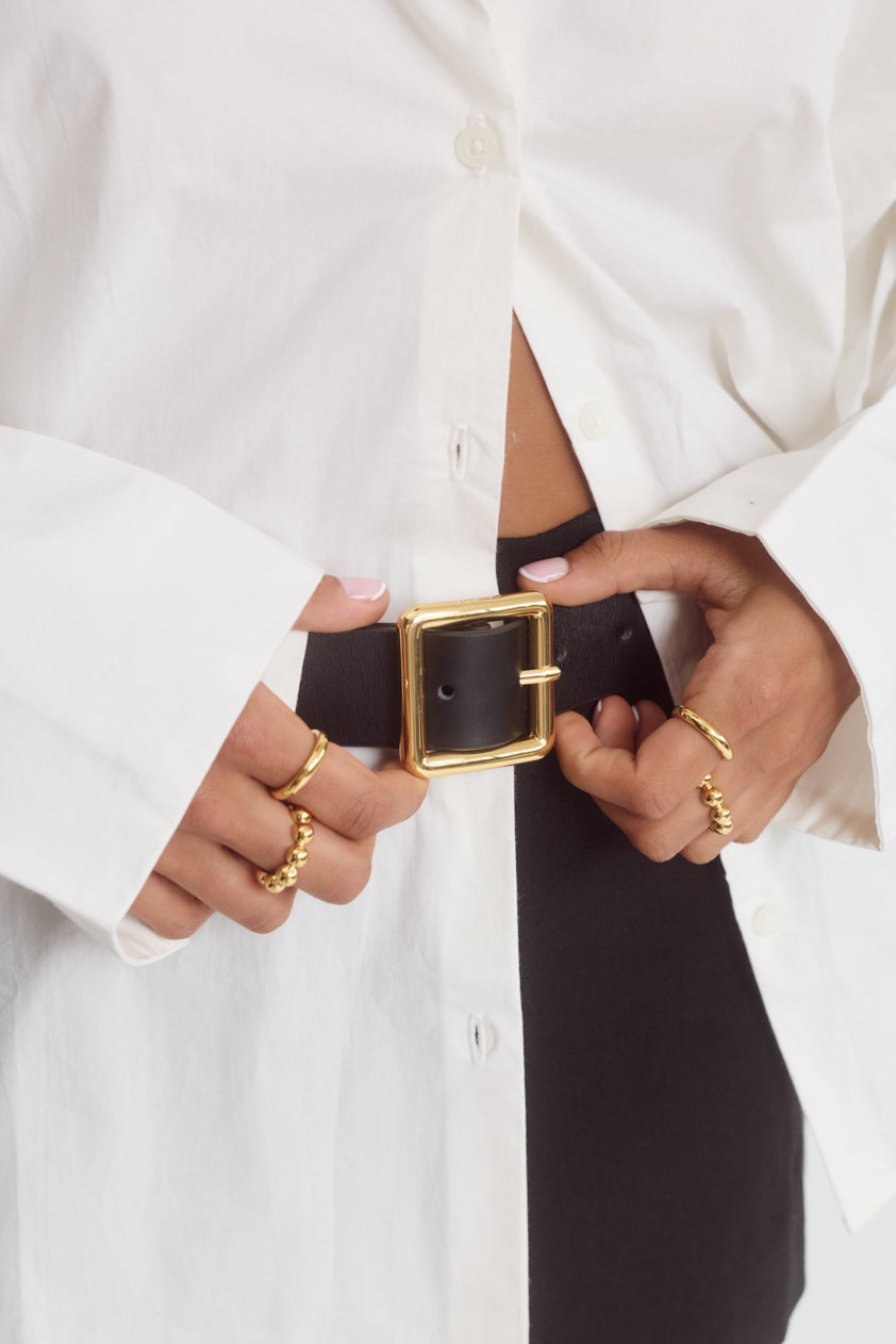Rich, warm, and softly luminous – our signature gold finish. Each piece is plated over high-quality stainless steel for enduring wear.