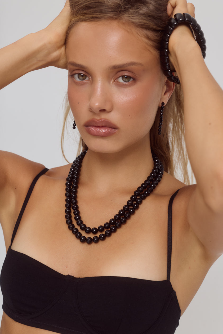 A multi-functional piece designed to be worn your way - styled as a beaded belt or transformed into a statement necklace. Featuring glossy, round agate beads, Enid brings effortless polish to any look. One piece, multiple possibilities.
