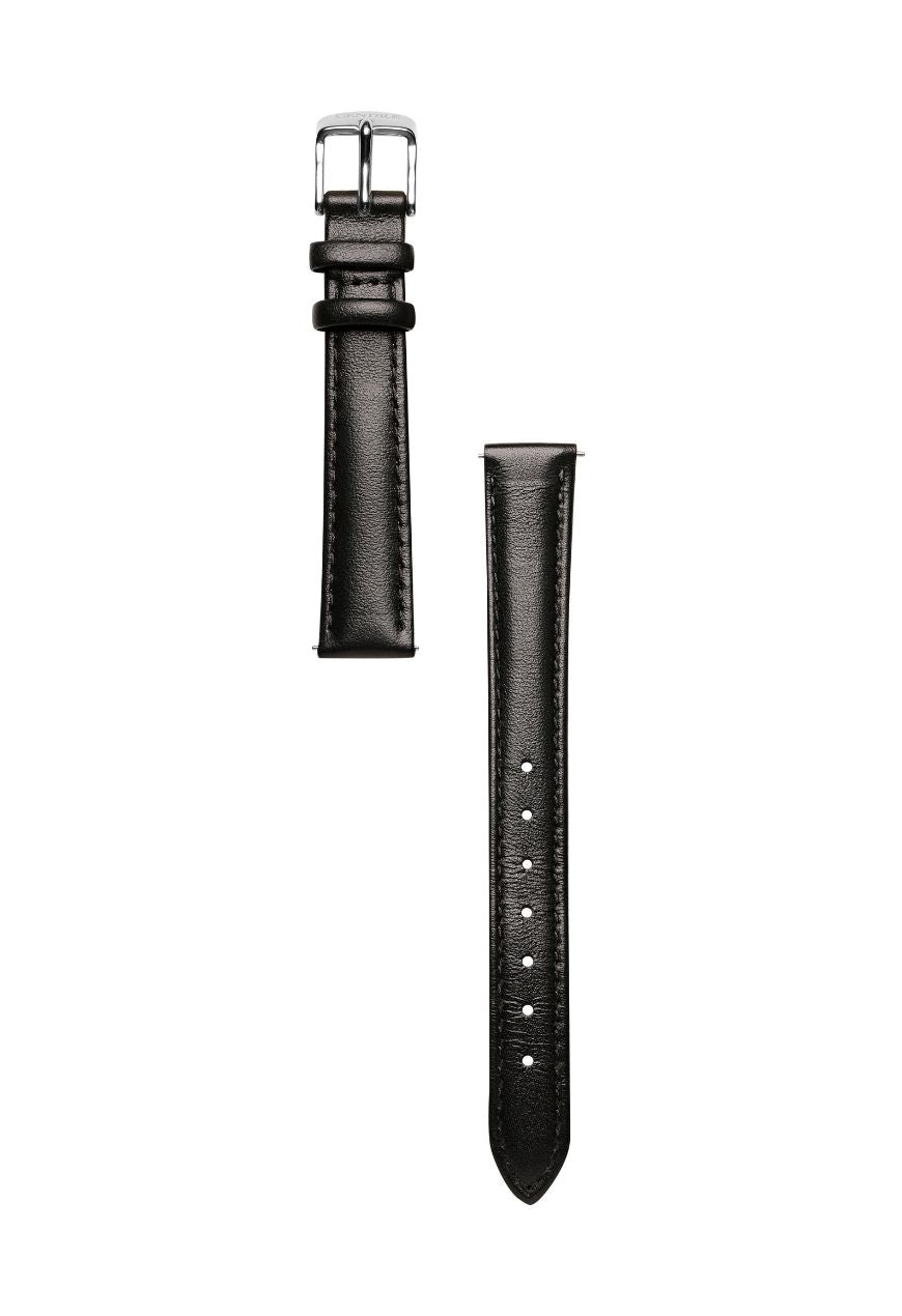 Classic | Black Smooth Leather Watch Band | Silver