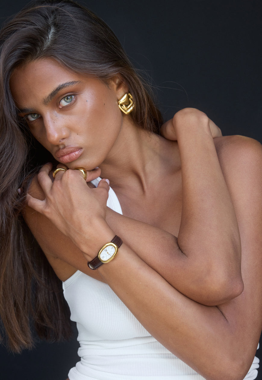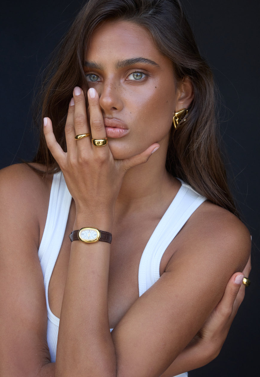 Rich, warm, and softly luminous – our signature gold finish. Each piece is plated over high-quality stainless steel for enduring wear.