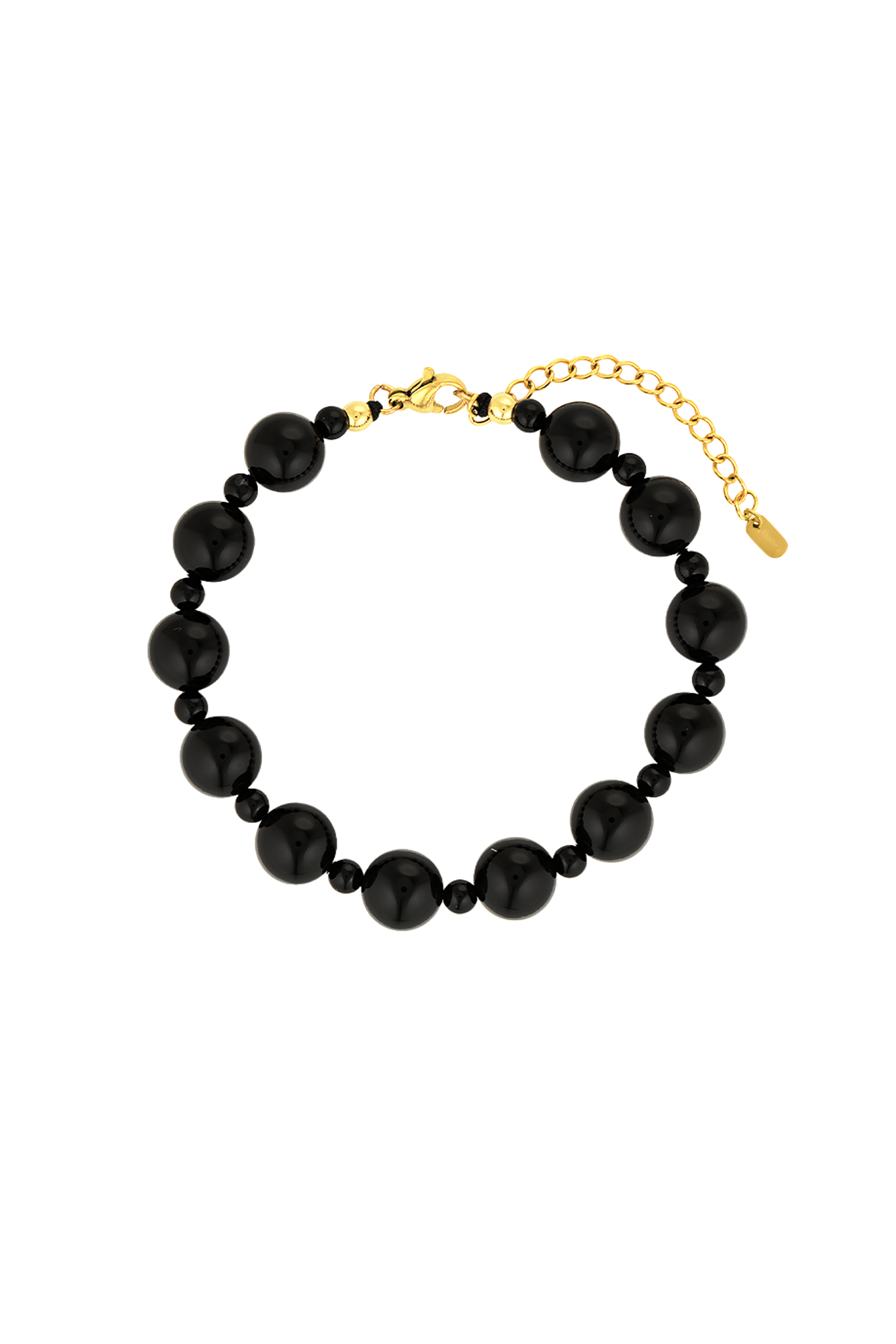 The Constance Bracelet features round black agate beads paired with a delicate gold chain. Lightweight and versatile, it effortlessly elevates any look. Pair it with the Constance Necklace for a coordinated look.