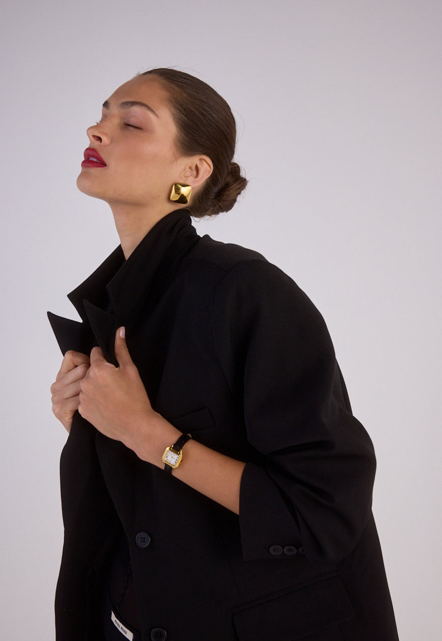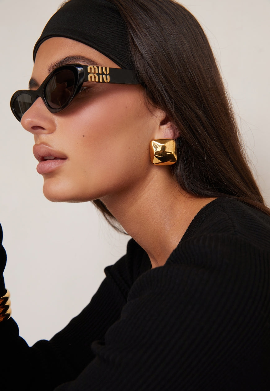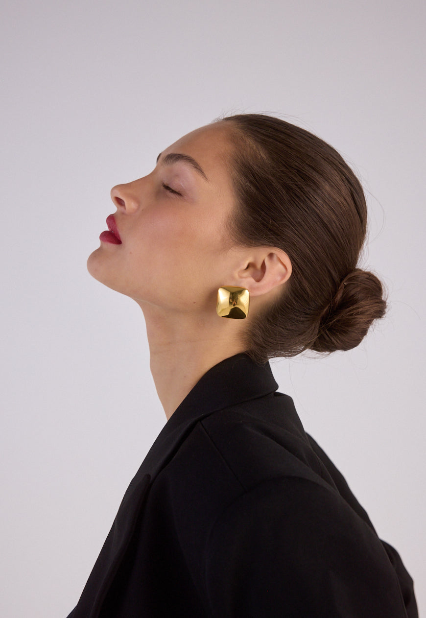 The Gigi Earrings feature a square-shaped design with unique visual dimension, crafted from 18K Premium Gold Plated Stainless Steel. This statement style is bold yet lightweight, designed to elevate any outfit.