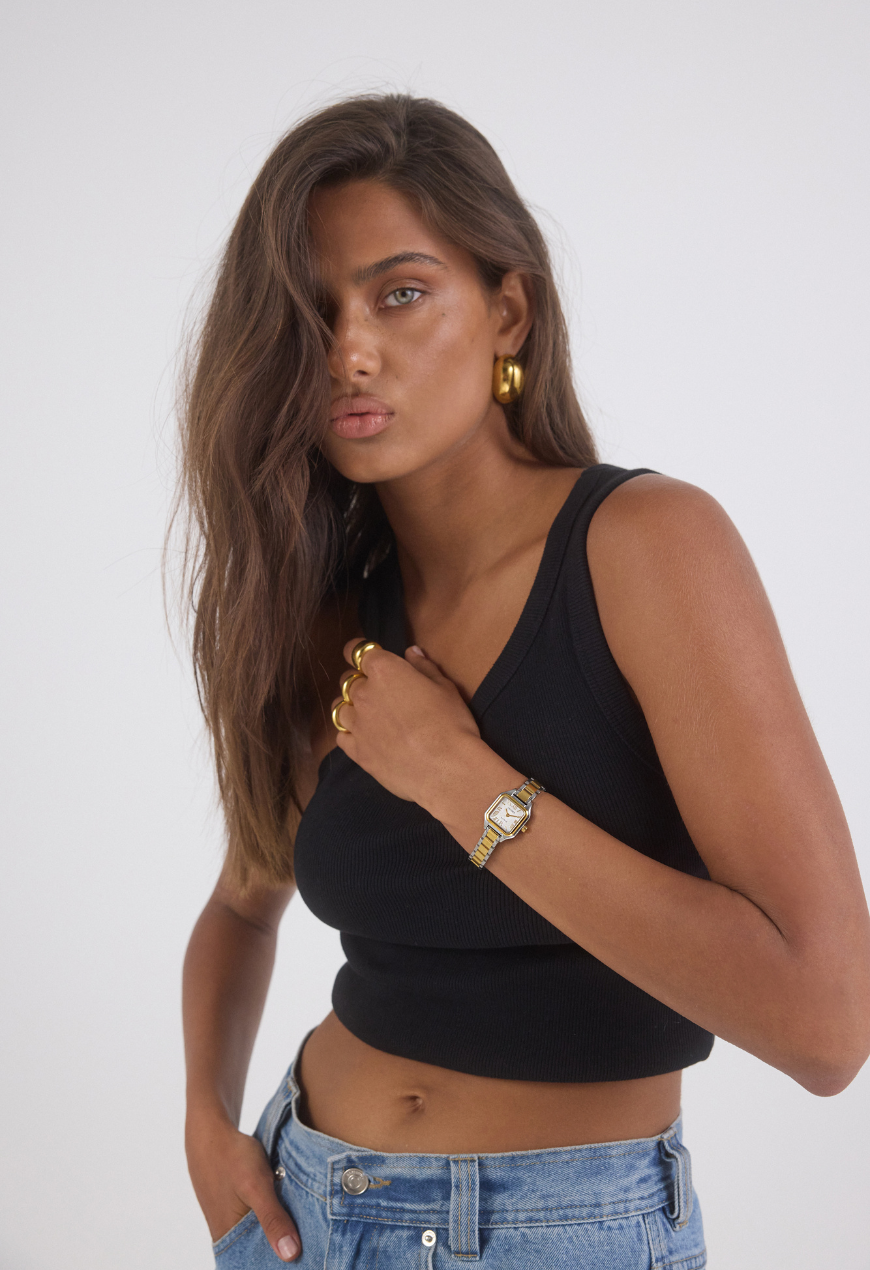 Combining our signature 18k gold plating with polished silver tones, each piece is crafted from premium stainless steel for lasting shine, durability, and a versatile, contemporary finish.