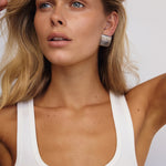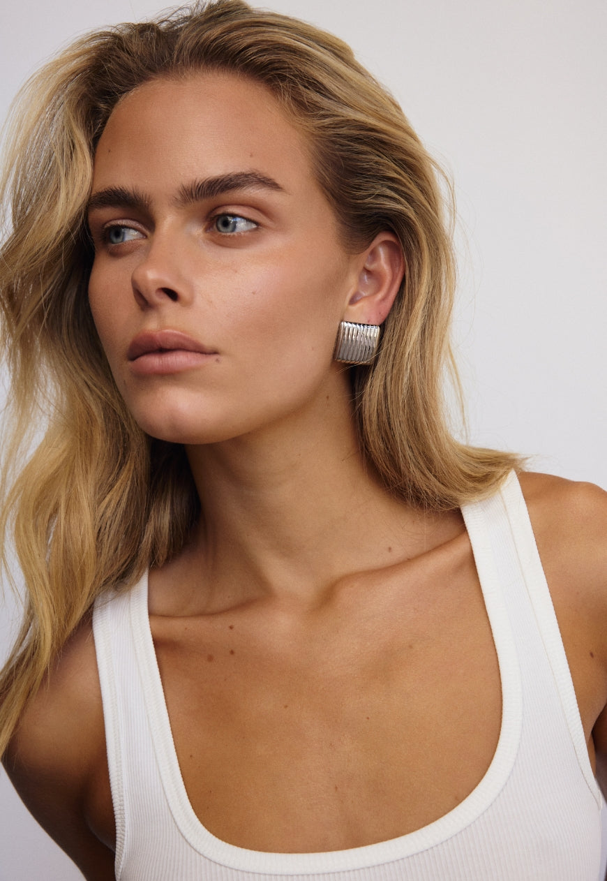 An everyday staple with a refined edge. The Mara Earrings are High Polish Stainless Steel squares, finished with soft ribbed lines that add dimension and catch the light. Versatile enough for daily wear, elevated enough for evening.