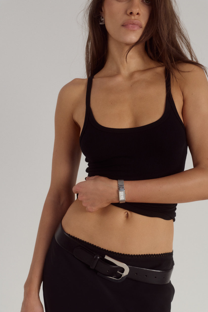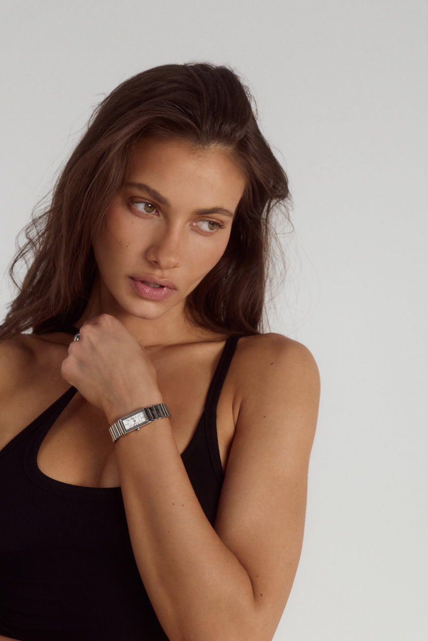 Inspired by the streets of New York, this sleek and bold timepieces is made for the girl on the go. Featuring a sleek band that feels both classic and modern, paired with a rectangular face and Roman Numeral dial.