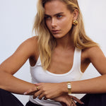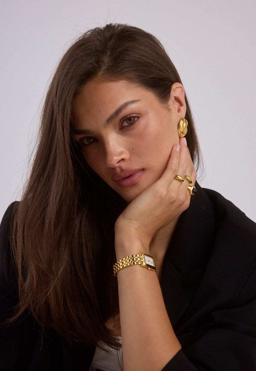 Rich, warm, and softly luminous – our signature gold finish. Designed to make a subtle statement, each piece is plated over high-quality stainless steel for enduring wear.