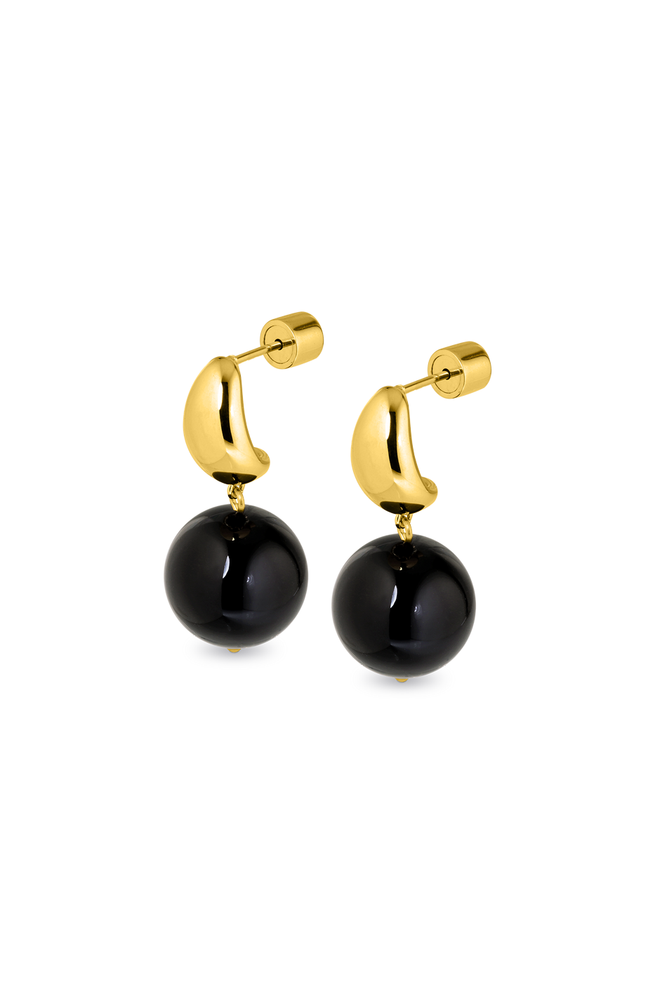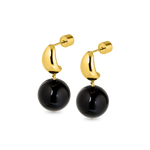 The Vera Earrings feature a smooth drop silhouette anchored by a rounded, domed base. Crafted from 18k gold plated stainless steel, paired with a black onyx pendant, this sculptural design brings quiet elegance to any look.